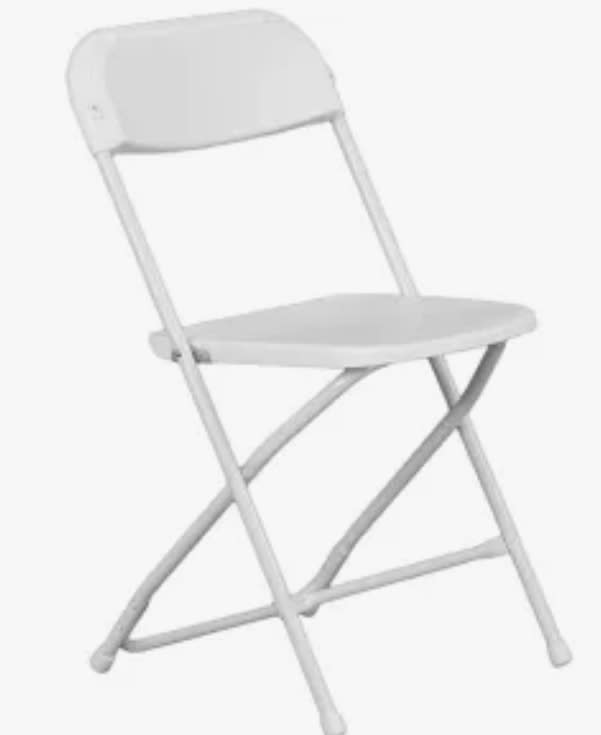 Our chairs are durable and can be stacked up easy where they lock in to each other. We have black or white chairs. please wipe down if any food or cake particles are visible. (also have 6ft and 8ft tables)
